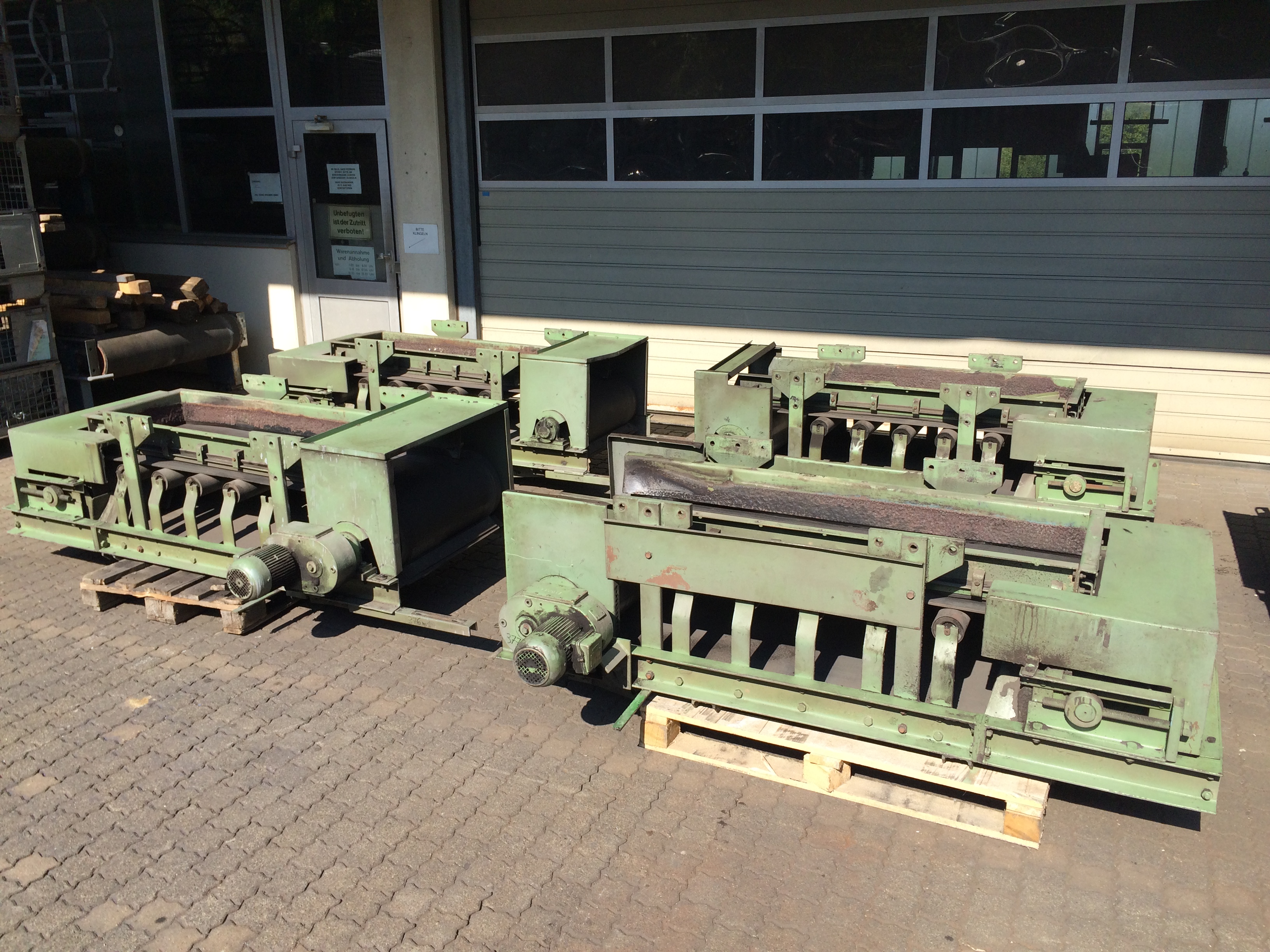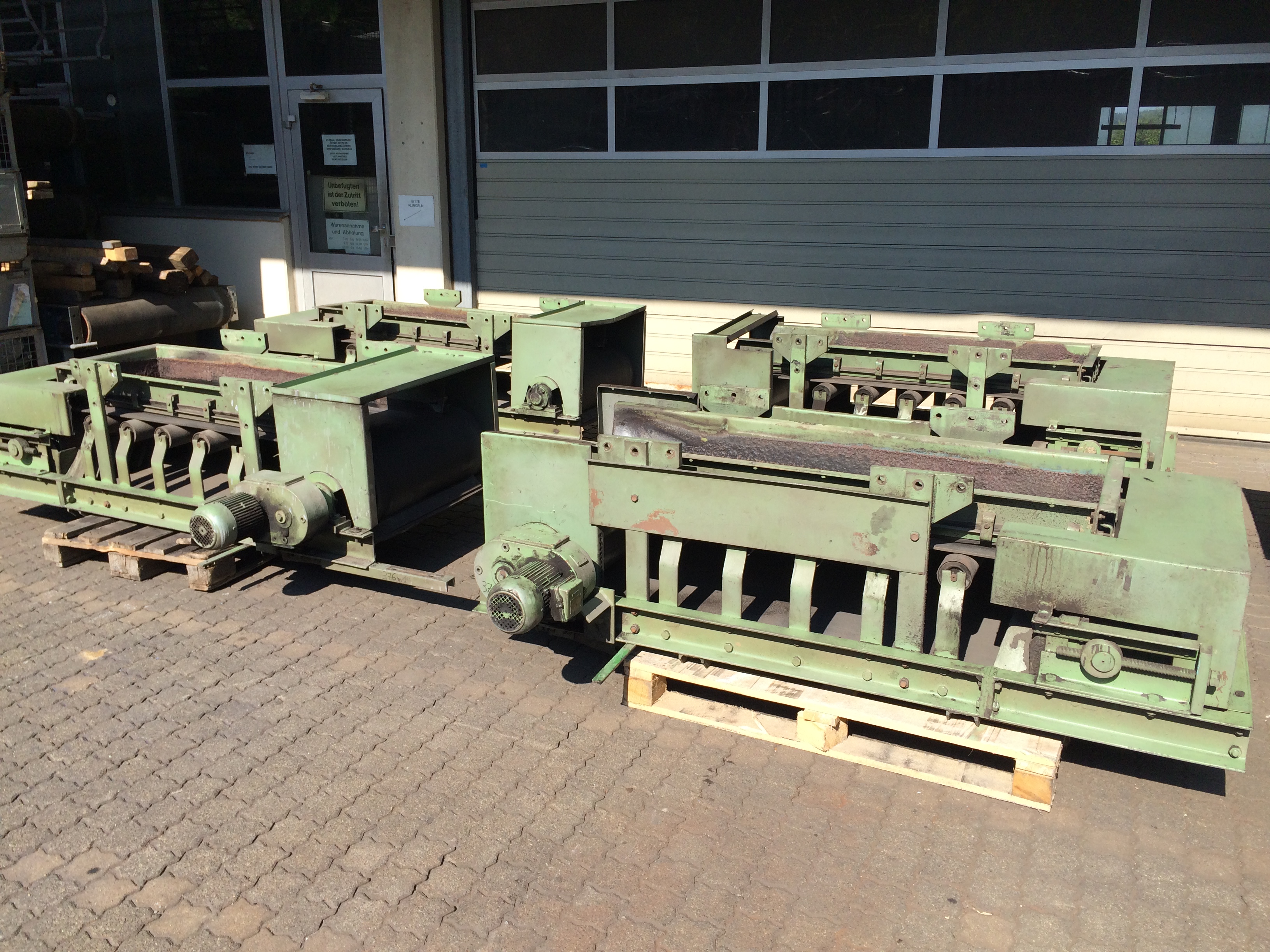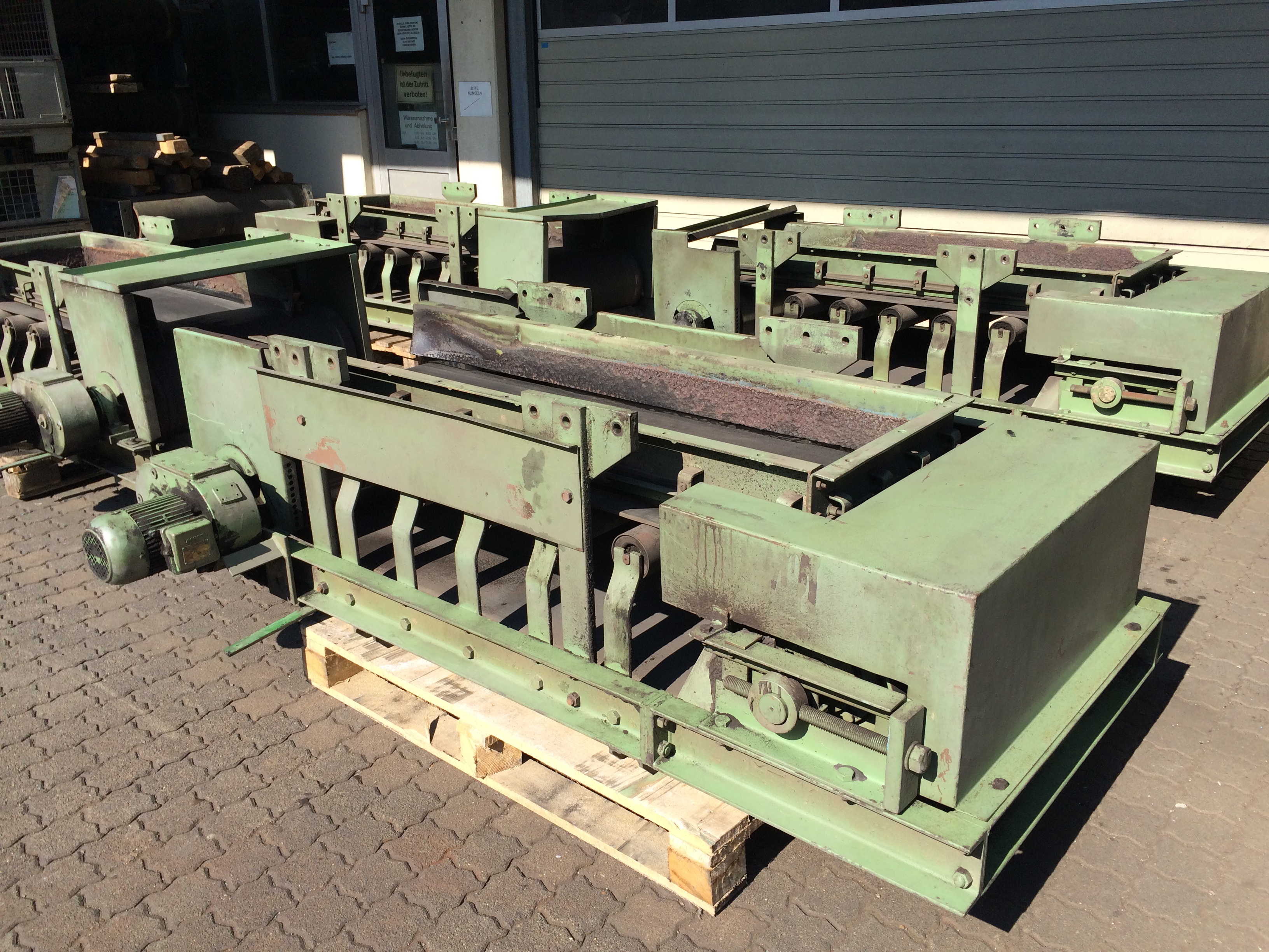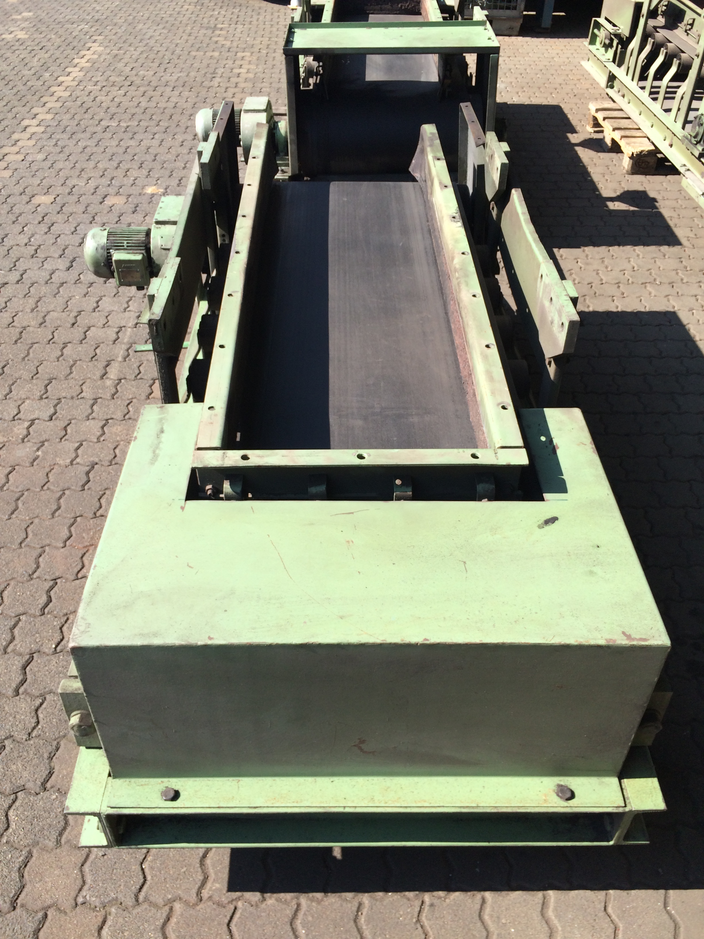 Bandbreite B-B 650 mm, Achsabstand A-A 1600 mm, BAUER-Aufsteckgetriebemotor, Antriebsleistung 0,75 kW, Einfüllschurre, Materialführungsleisten